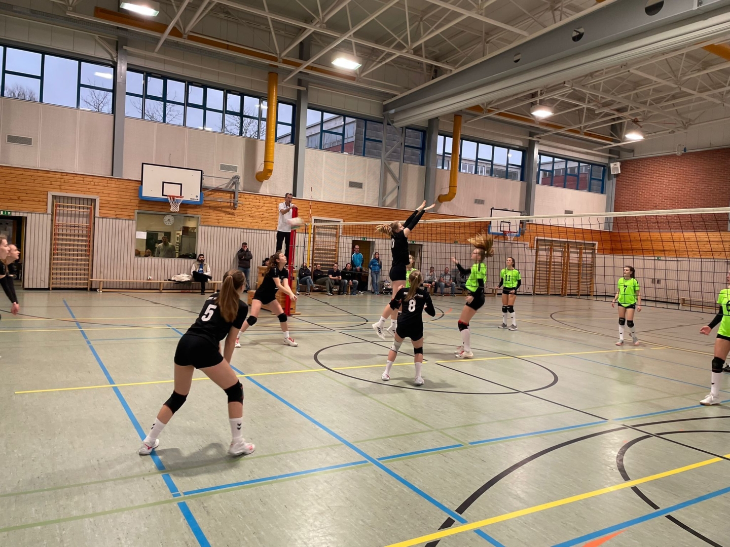 Auf dem Nachbarfeld bekam es SWE 2 mit Gera und Eisfeld zu tun. Ging das Spiel gegen Gera noch klar verloren, konnten sich die Mädels um Kapitän Hannah im zweiten Gruppenspiel deutlich steigern. Gegen den haushohen Favoriten aus Eisfeld gelang sogar fast ein Satzgewinn. Mit 23:25 musste man Eisfeld im ersten Satz nur knapp den Vortritt lassen. Was für eine Energieleistung, auf die Trainer Silvio zurecht stolz sein konnte. SWE 2 beendete den Finaltag schließlich auf einem guten Platz 6.